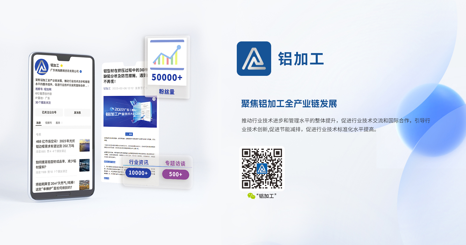 鋁加網(wǎng)(www.albiz.cn)是聞名鋁加工行業(yè)的垂直門戶網(wǎng)站,云聚鋁業(yè)新生態(tài),構(gòu)建鋁業(yè)新場景,以albiz.cn 網(wǎng)站為核心,以移動云端、鋁加工微信、鋁加網(wǎng)視頻號、《鋁型材??泛汀朵X世界》雜志為載體,成為了鋁加工行業(yè)資訊和精準(zhǔn)傳播的首選傳媒。鋁加網(wǎng),采集和發(fā)布全行業(yè)信息資訊,提供線上展覽、在線直播、短視頻、品牌策劃、品牌運營、品牌傳播等全方位的專業(yè)服務(wù)。